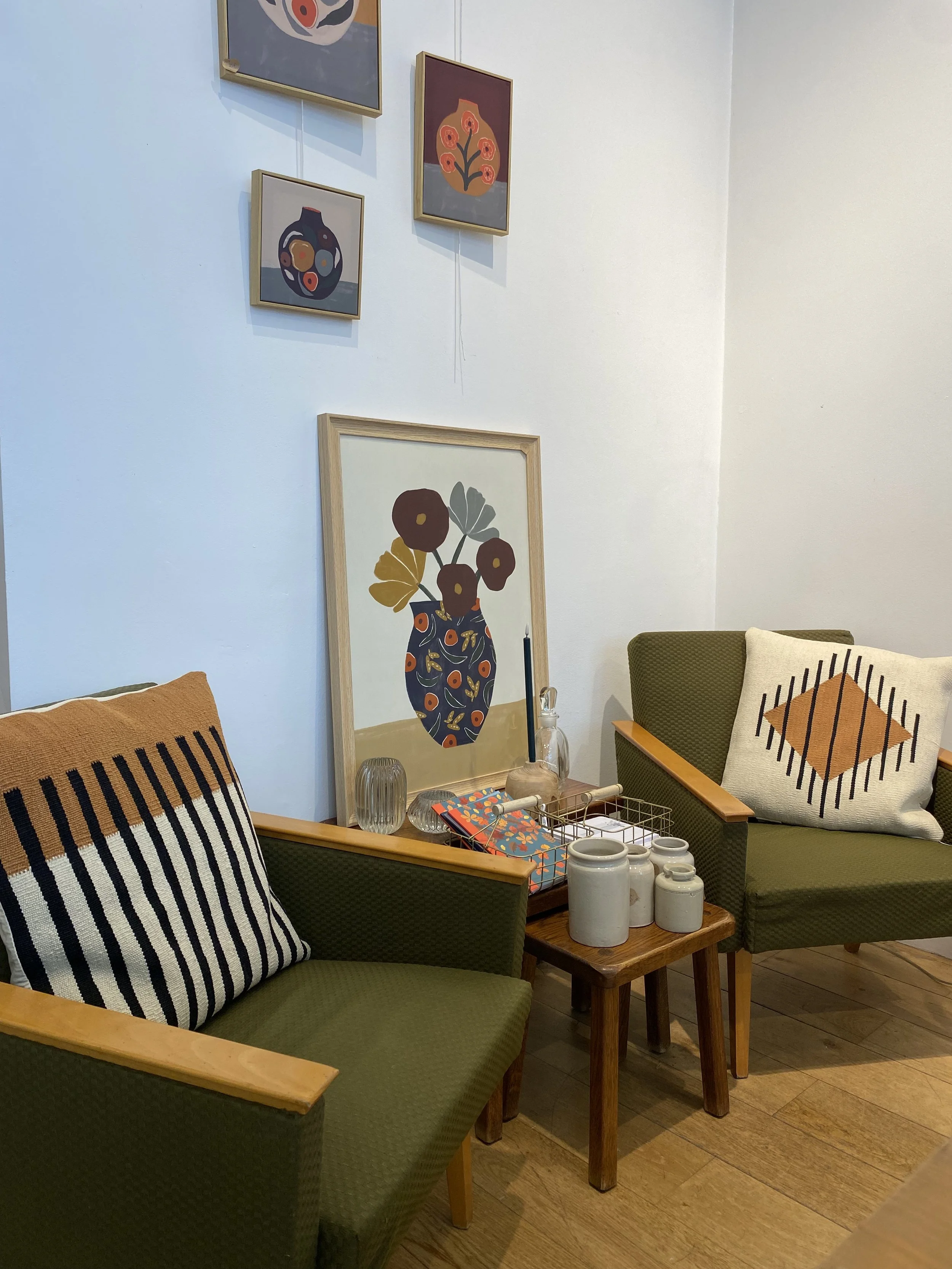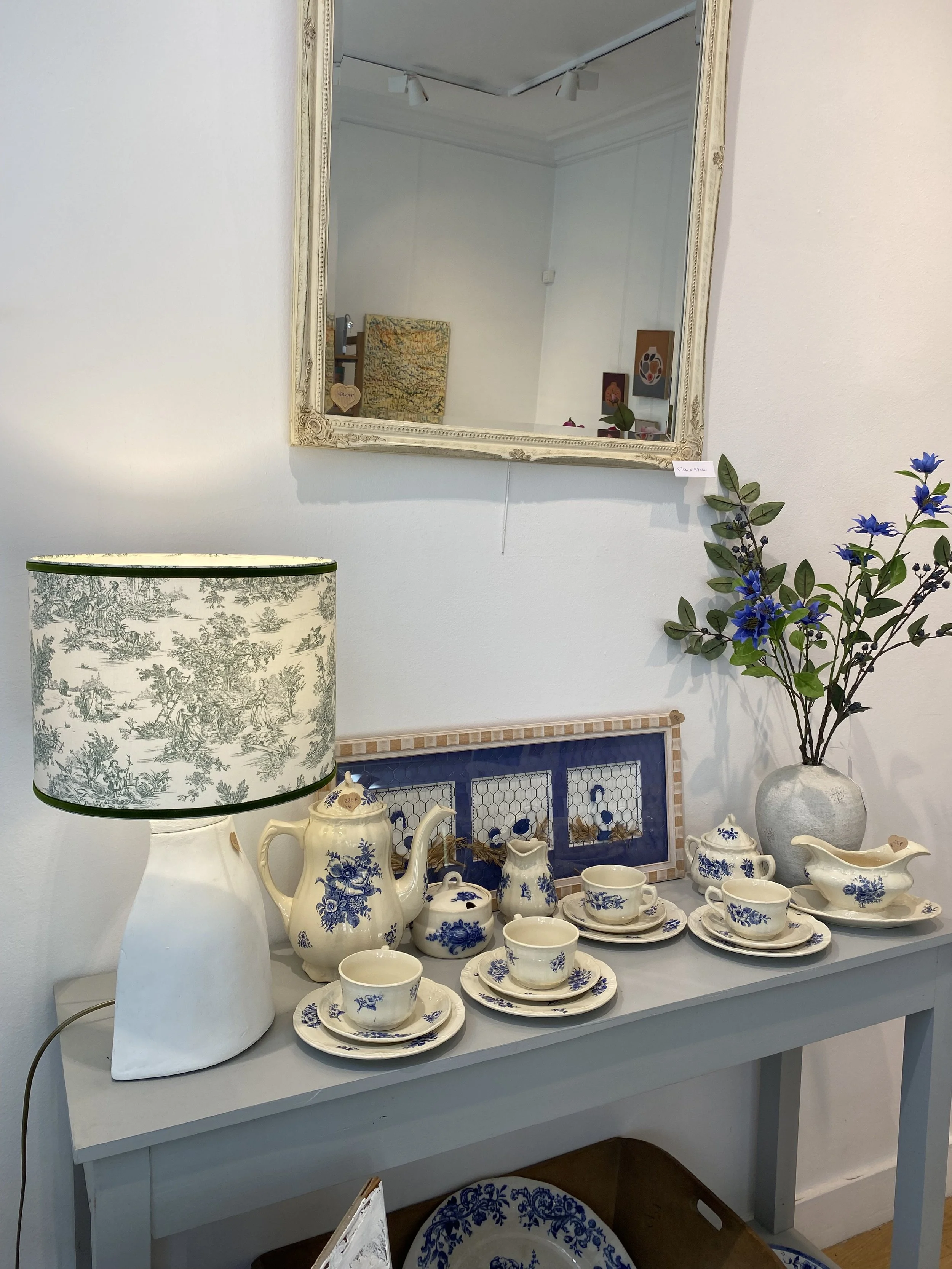 Le tout décoré avec des pièces de seconde main de qualité, des articles d’artisans et quelques pièces neuves triées sur le volet. Tout est à vendre et la séléction change toutes les semaines”.